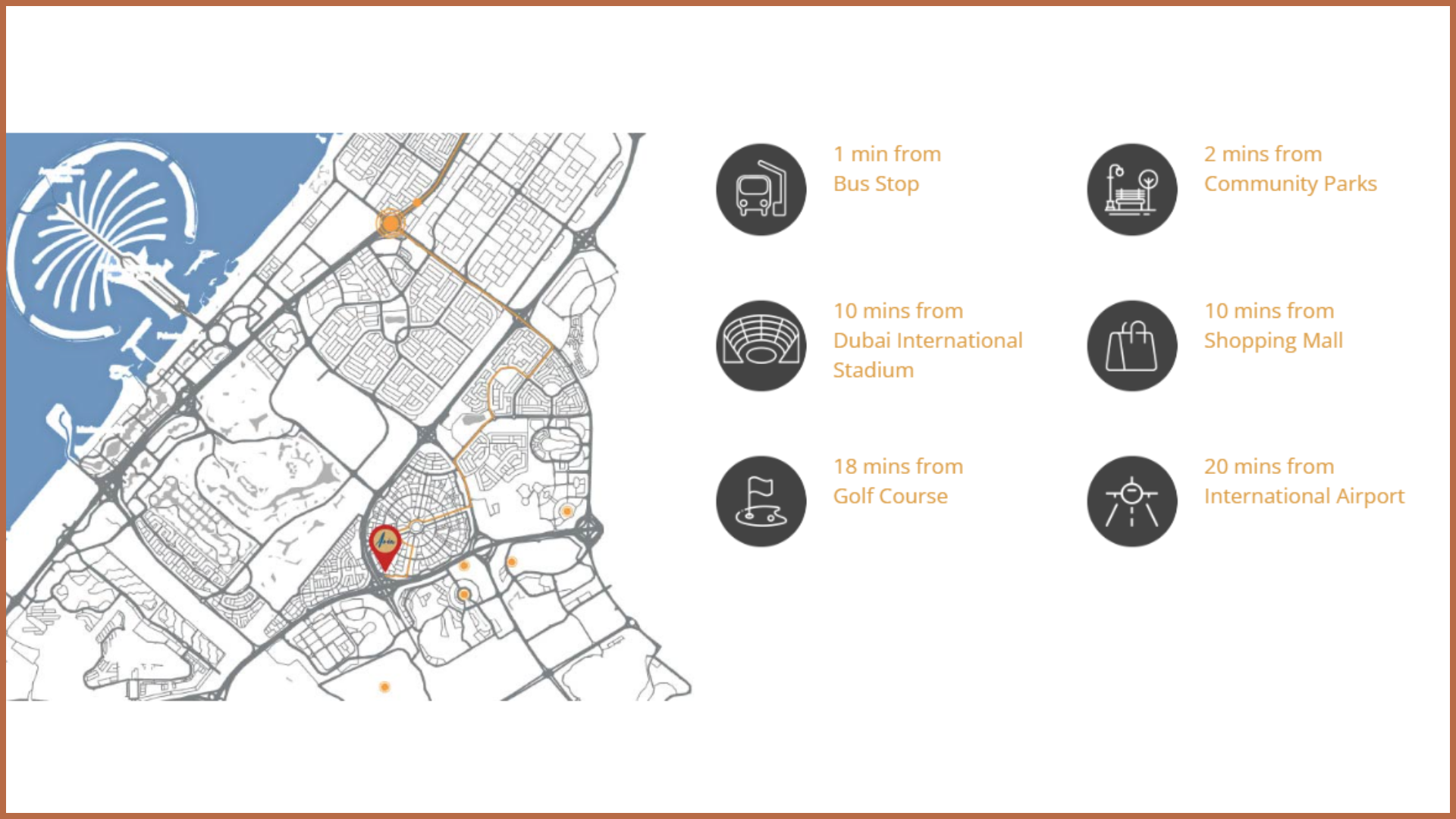 Jumeirah Village Circle is within close distance from major Dubai attractions. You can reach these places in just 15 minutes of cab drive. You can visit shopping malls, luxury resorts, golf clubs, metro stations, and beaches within no time. The major destinations like Marina Mall, Ibn Batuta Mall, Mall of the Emirates, Dubai World Central Airport, and Jebel Ali Free Zone are located very close to Jumeirah Village Circle. This is the reason why this is the most preferred residential destination in Dubai.